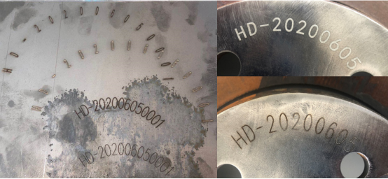 為了便于對產(chǎn)品的質(zhì)量進(jìn)行跟蹤,產(chǎn)品上必須要有產(chǎn)品和廠家的信息,在軋輥的加工過程中一般會(huì)將廠標(biāo)、規(guī)格、參數(shù)、型號(hào)、批次等標(biāo)記刻在軋輥的端面。而傳統(tǒng)的噴印的標(biāo)刻方式會(huì)隨著時(shí)間的推移而慢慢脫落,刻印的方式雖然不會(huì)令字符脫落但是又無法刻印二維碼等信息。現(xiàn)在的激光標(biāo)刻方式恰巧能完美的解決字符脫落和標(biāo)刻二維碼等問題。