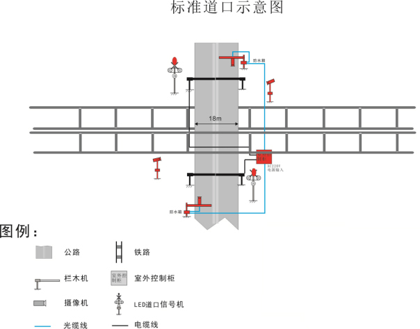 道口室外設(shè)備包括集中控制柜、遮斷信號機(jī),報(bào)警信號機(jī),攝像機(jī)。